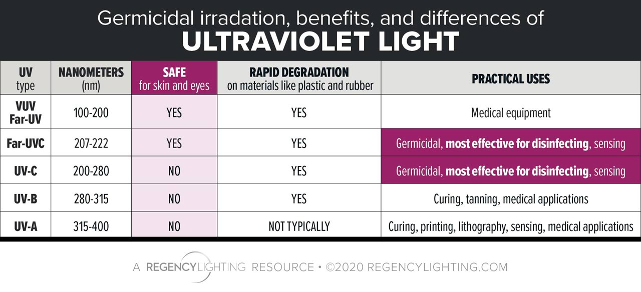 UV Disinfecting devices are being sold all over social media and on most online shopping resources. Everything from replacement light bulbs to desk lamps to magic wands that allegedly disinfect anything you wave it over. The claims of these products stem from the truth that, for decades, UV Lighting has been used as a sterilization and disinfection tool for hospitals and other institutional facilities. But that truth can be confusing if you don’t understand the science behind the types of UV light.