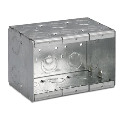 - Steel City Masonry Box, Deep Welded, 3 Outlets, 3 Gangs, 16 Knockouts, 1/2 in, 3/4 in Knockout, Knockout Cable Entry, Threaded Mounting, 71 cu-in Capacity, Steel, Galvanized, Silver, 3-3/4 in L x 5-1/2 in W x 3-1/2 in D Dimensions