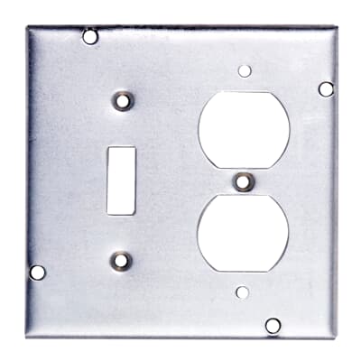 - Brand: Steel CityApplication: For use with one toggle switch and one duplex flush receptacleColor: SilverCountry of Origin: USCubic Capacity: 7.5 cu inFinish: Pre-GalvanizedMaterial: SteelShape: SquareSize: 4-11/16 InchesStandard: UL E2969 / UL E2969Type: Outlet Box Covers