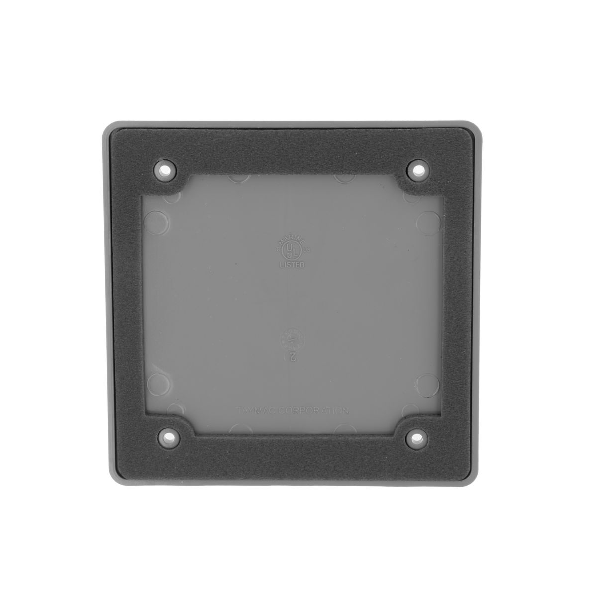 - Brand: TaymacApplication: FlatColor: GrayCountry of Origin: THHeight: 4.88 INLength: 0.300000000000000 inMaterial: NonmetallicMounting: DeviceSpecial Features: TAYMAC Weatherproof nonmetallic blank covers are made from high-impact polycarbonate construction providing maximum durability; NEMA 3R compliant; 2 gang; box mount; includes attached gasket and mounting hardware; gray.Standard: UL File No. E195978|NEMA 3R|Meets NEC 2014 Article 406.9A|PROP65: Reproductive Harm - www.p65Warnings.ca.govSub Brand: TAYMACType: CoverWidth: 4.88 in