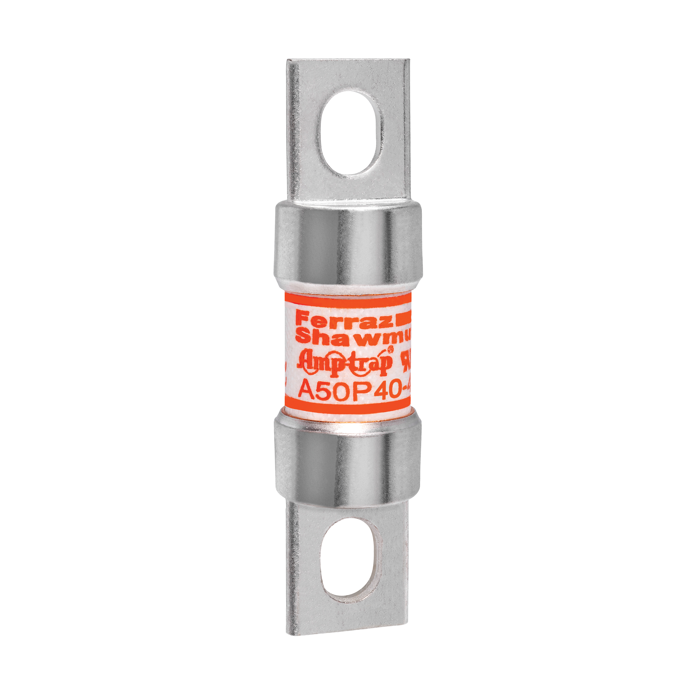 - Mersen AMP-TRAP Semiconductor Fuse, Current Limiting Fast Acting, Series: A50P, Non-Rejection, 40 A, 500 VAC, 100 kA Interrupt, 10 ms Response, Blade Terminal, Bolt Mounting, Cylindrical Body, Fiber, 0.81 in Dia x 3.19 in L Body
