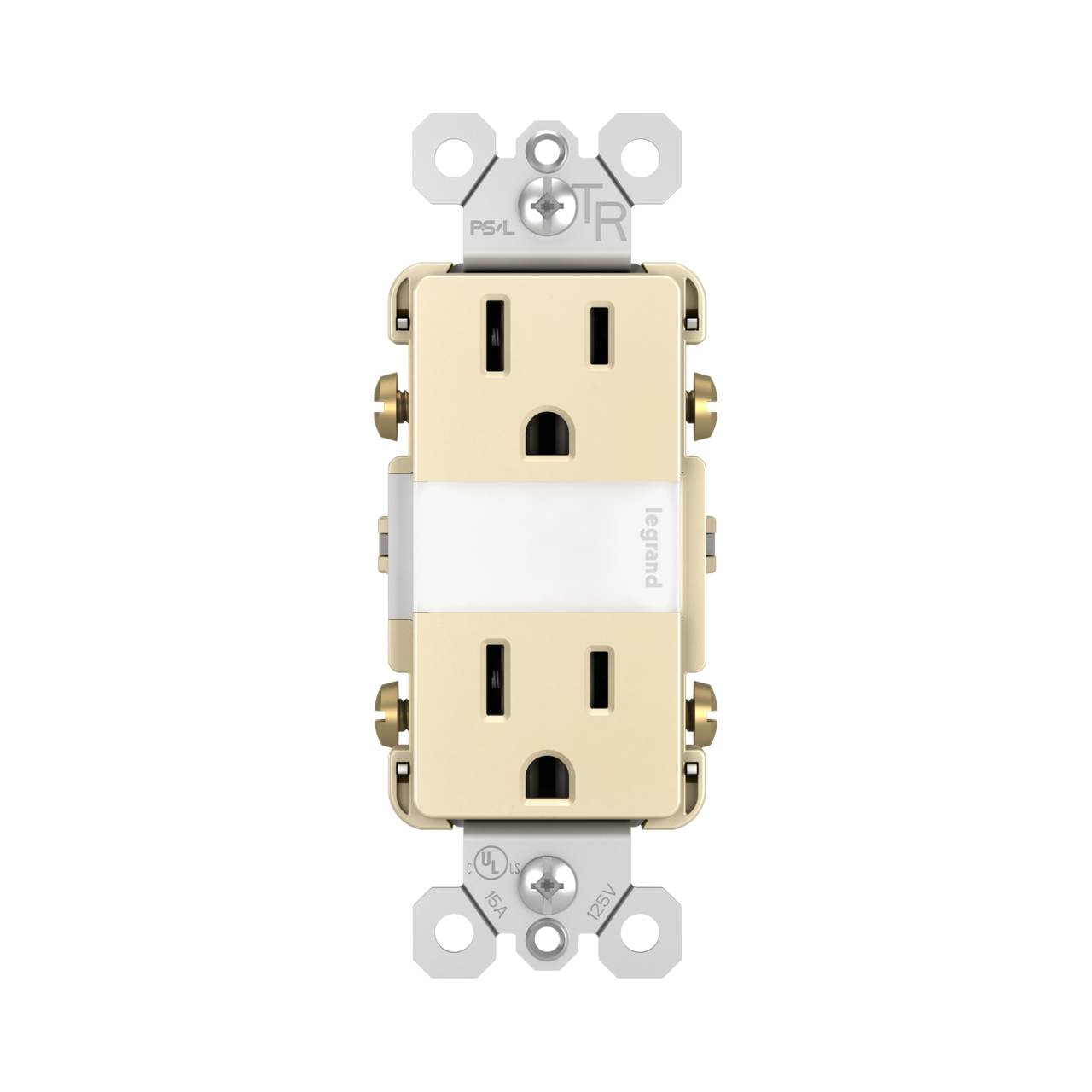 - Brand: Pass & Seymour LegrandAmperage Rating: 15Application: ResidentialContact Configuration: 15AContact Rating: 125Country of Origin: CNEnvironmental Conditions: Flammability Rating: UL 94 V2Interface: NEMA 5-15RMounting: BoxNEMA Rating: 15ANumber of Poles: Double PoleNumber Of Wires: 3Operating Cycles: 50,000 cycles minimum, resistive, inductive, tungstun filament lamp loadOperating Temperature: Maximum continuous +115°C, minimum -40°CSize: Depth 1.5"" x Width 1.6"" x Height 2.75""Special Features: Night LightStandard: UL, CULUS, cULus, UL ListedSub Brand: radiantType: Outlet, Nightlight, Tamper-ResistantVoltage Rating: 125