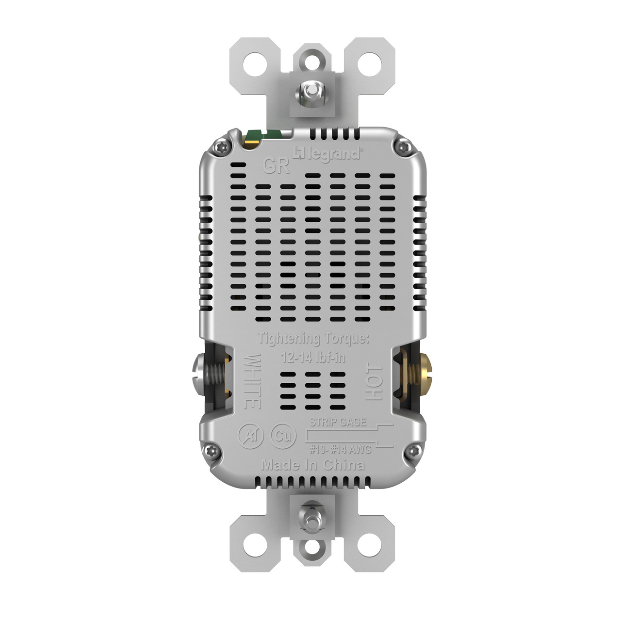 - Brand: Pass & Seymour LegrandCountry of Origin: CNEnvironmental Conditions: 95% (relative humidity, non-condensing)NEMA Rating: 15ANumber of Poles: Double PoleNumber Of Wires: 3Standard: UL, CULUSSub Brand: radiantType: Outlet