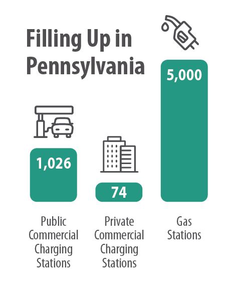 According to the US Department of Energy, there are just under 1,100 charging stations* in Pennsylvania with only 74 of them for private commercial use. Compare that with roughly 5000 gas stations, and it’s clear that EV is on the rise.